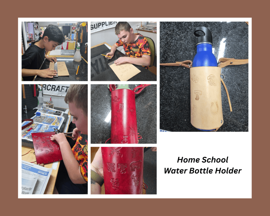 We have also run our first Home School class for the year. It was a fun day where the students got to make their very own custom water bottle holders. The did the whole process using maths skills to measure their bottles to determine the size of the piece of leather needed. All of the kids had fun choosing stamps for their holder and dying the leather. They also learnt that in Leathercraft, there is a lot of waiting for things to dry. If you know anyone what would be interested in our Home School classes then please pass on our information.